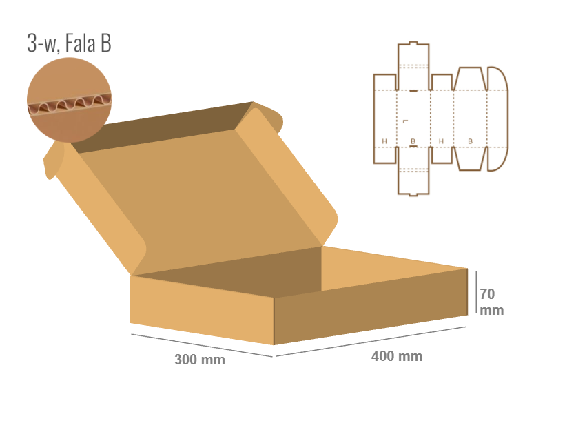 Pudełko fasonowe 400x300x70 - Fefco 427